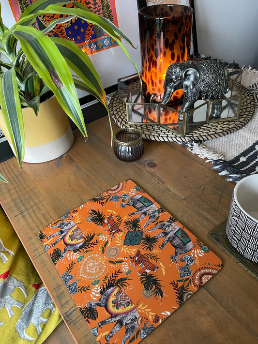 Indian Elephant Printed Placemats in Orange
