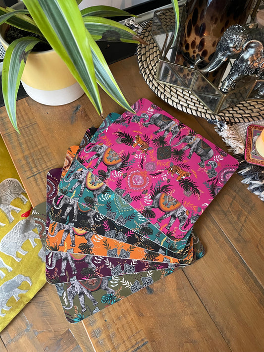 Indian Elephant Printed Placemats in Fuchsia