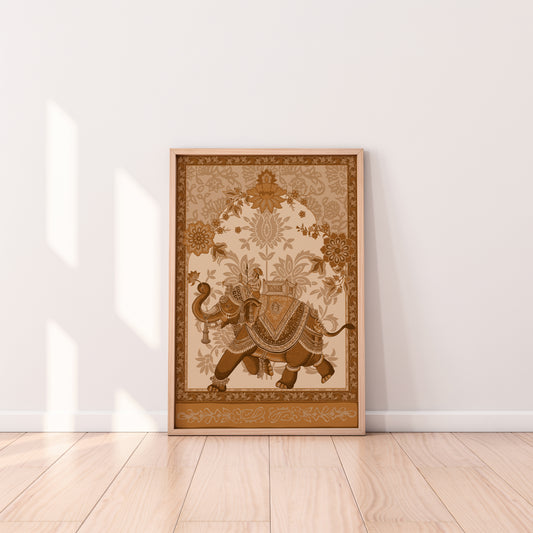 Marching Indian Elephant – Art Print | Traditional Block Print Style with Digital Layering
