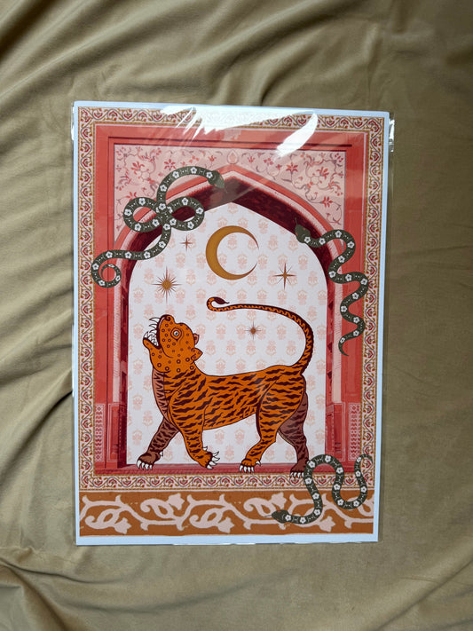 Moonlight – Art Print | Traditional Block Print Style with Digital Layering